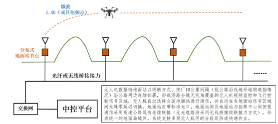 ①巡查區(qū)域可通過(guò)布設(shè)的分布式地面站任意擴(kuò)展,不受地形地物限制,實(shí)現(xiàn)超視距巡查;